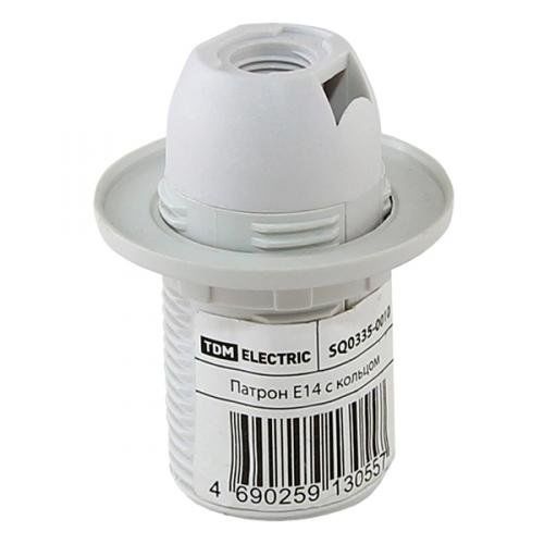 Патрон Е14 TDM пластик, люстровый с кольцом, термостойкий, белый, 4А SQ0335-0010